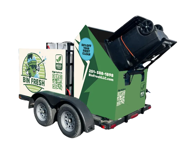 Then we use an eco-friendly deodorizer that keeps your bins smelling fresh and clean.